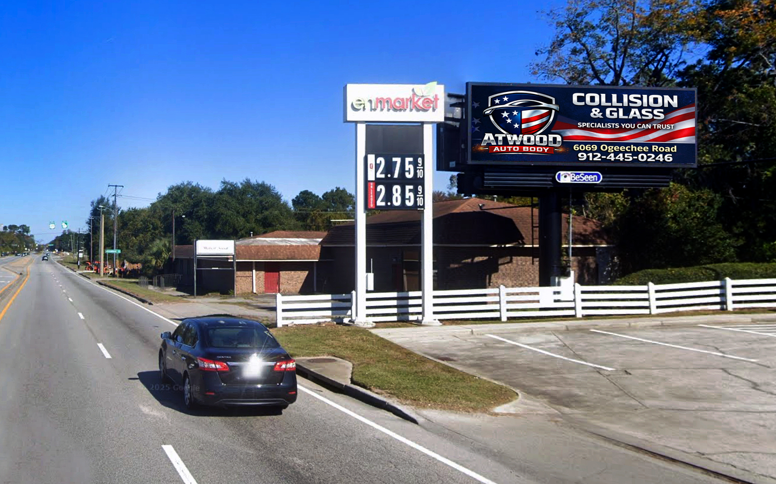High visibility location, strong traffic flow, Savannah market, near military bases.